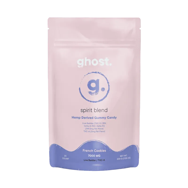 Savor the rich French Cookies Spirit Blend Gummies. 7000mg per bag, 350mg each of Live Badder, THC-A, and Delta 10 for a delightful experience.