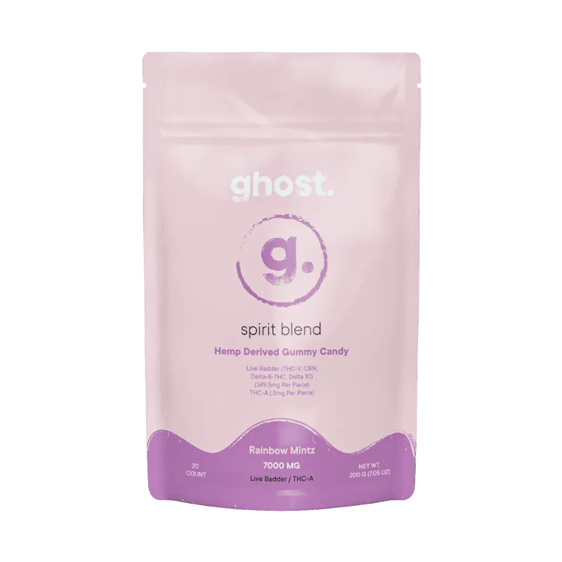 Enjoy the vibrant and refreshing taste of Rainbow Mintz with Spirit Blend Gummies. Each gummy contains 350mg of Live Badder, THC-A, and Delta 10, providing a potent and invigorating experience. With 7000mg per bag, these gummies offer a colorful and delightful way to enjoy cannabinoids.
