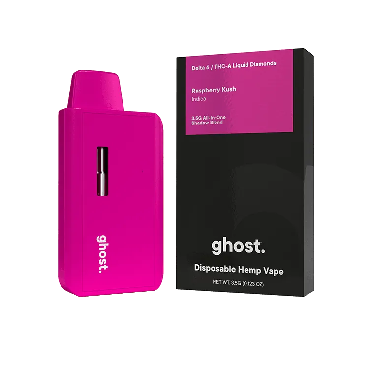 Relax with the Raspberry Kush Shadow Blend All-In-One Vape. 3.5 grams of Delta-6 and THC-A Liquid Diamonds for a soothing high.